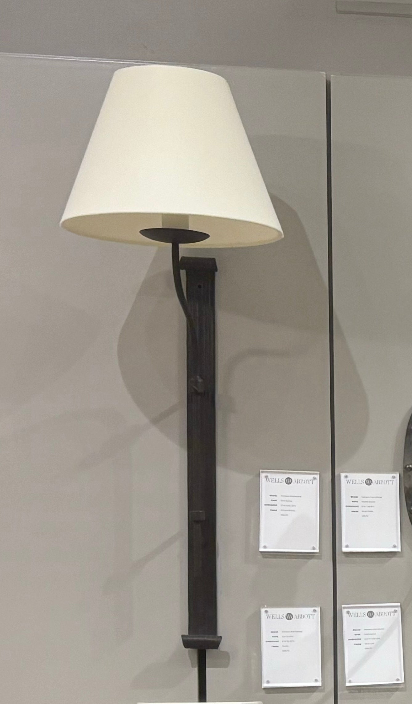 Given its stalwart design, the Deni Sconce is surprisingly flexible, as it pivots like a swing-arm lamp but with so much more charm. The sconce has a ribbed wall plate made of hand forged reeded strapwork that clasps the delicate stem loosely enough to allow it to swivel its light source.